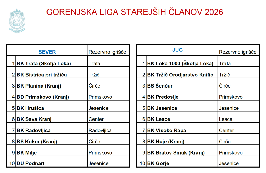 1. igrajo lahko vsi registrirani in neregistrirani igralci, ki bodo v letu 2026 dopolnili 55 let – letnik 1971 in starejši, ženske 50 let – letnik 1976 in starejše, ki so registrirani za starejše člane v OBZ Gorenjske